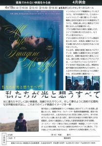 徳島でみれない映画をみる会4月例会 映画「私たちが光と想うすべて」上映会 (会員制)※当日入会可 徳島でみれない映画をみる会